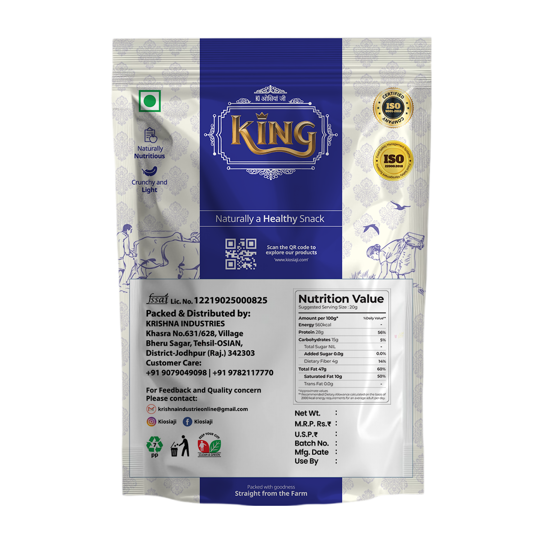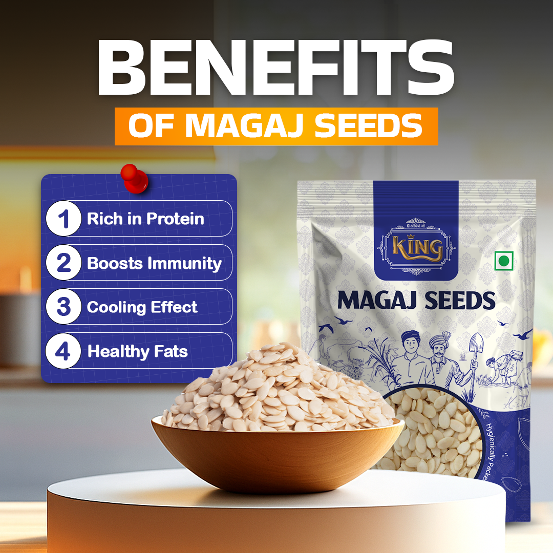 Magaj (muskmelon seeds) from Kiosiaji are carefully sourced and hygienically packed to deliver natural purity and freshness. Known for their mild nutty taste, magaj is widely used in Indian sweets, beverages, and traditional cooking.